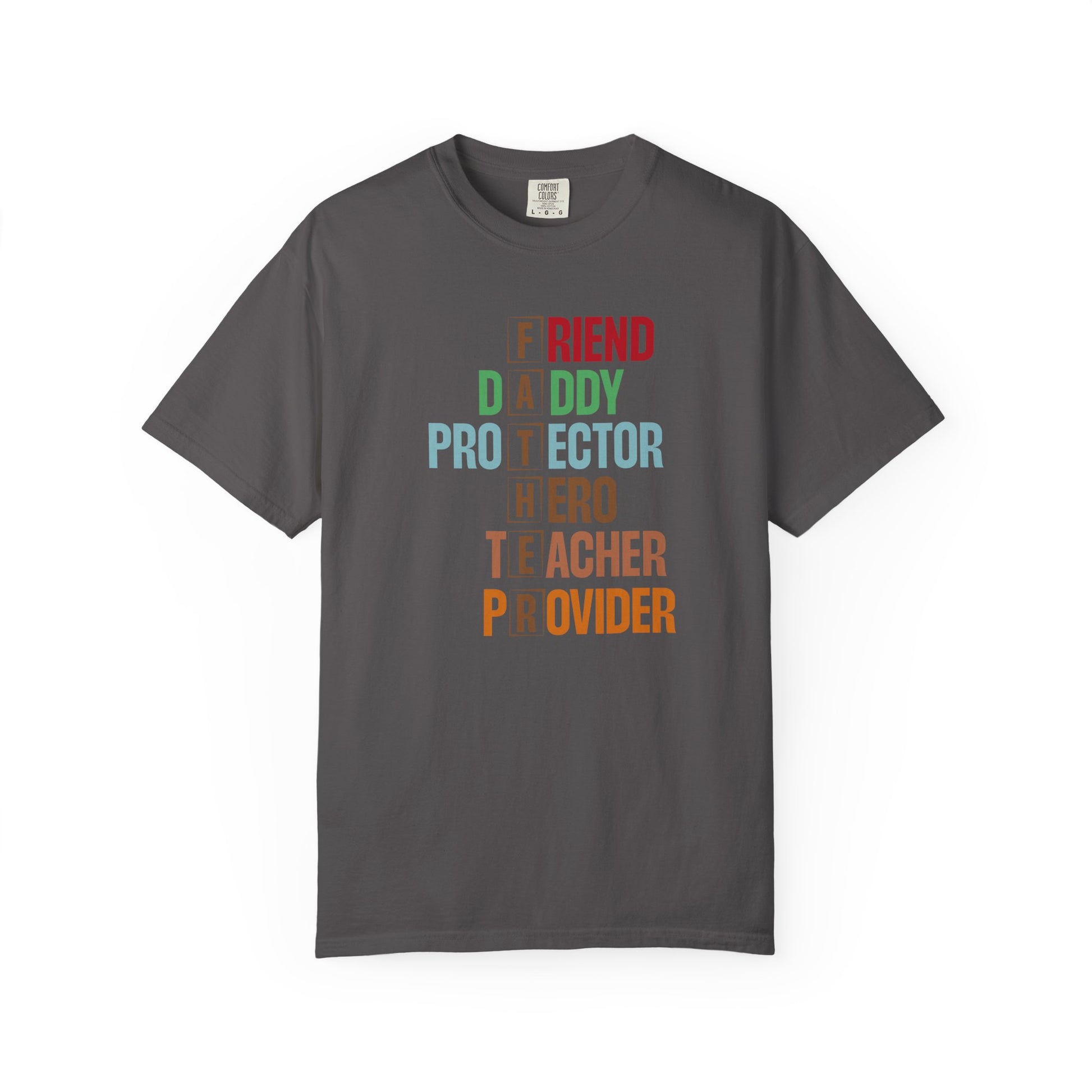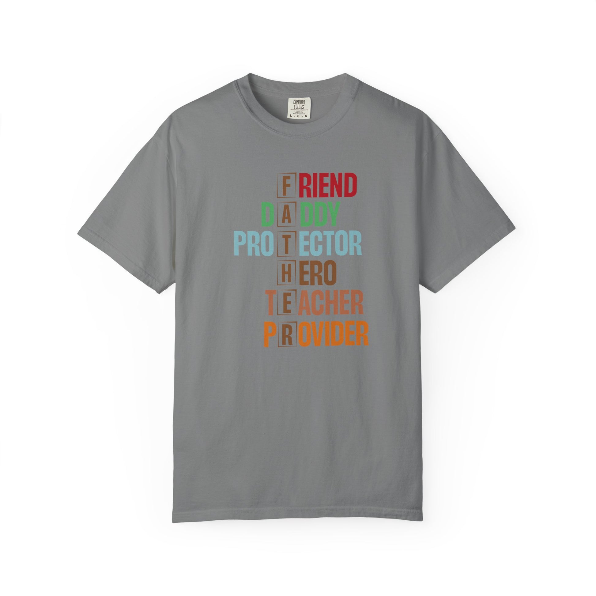 Introducing our versatile Unisex Garment-Dyed T-shirt, a perfect blend of comfort and style. This tee embodies a relaxed vibe, making it ideal for everyday wear or casual outings. With its soft garment-dyed fabric, it offers a unique texture and aesthetic that enhances any wardrobe. Perfect for fathers, teachers, and anyone who assumes a protector role, this shirt is a great gift for Father's Day, birthdays, or just to show appreciation. Its classic crew neckline complements various accessory styles, making it suitable for both casual and semi-formal occasions. Celebrate life's moments or simply enjoy a day out in comfort and style!