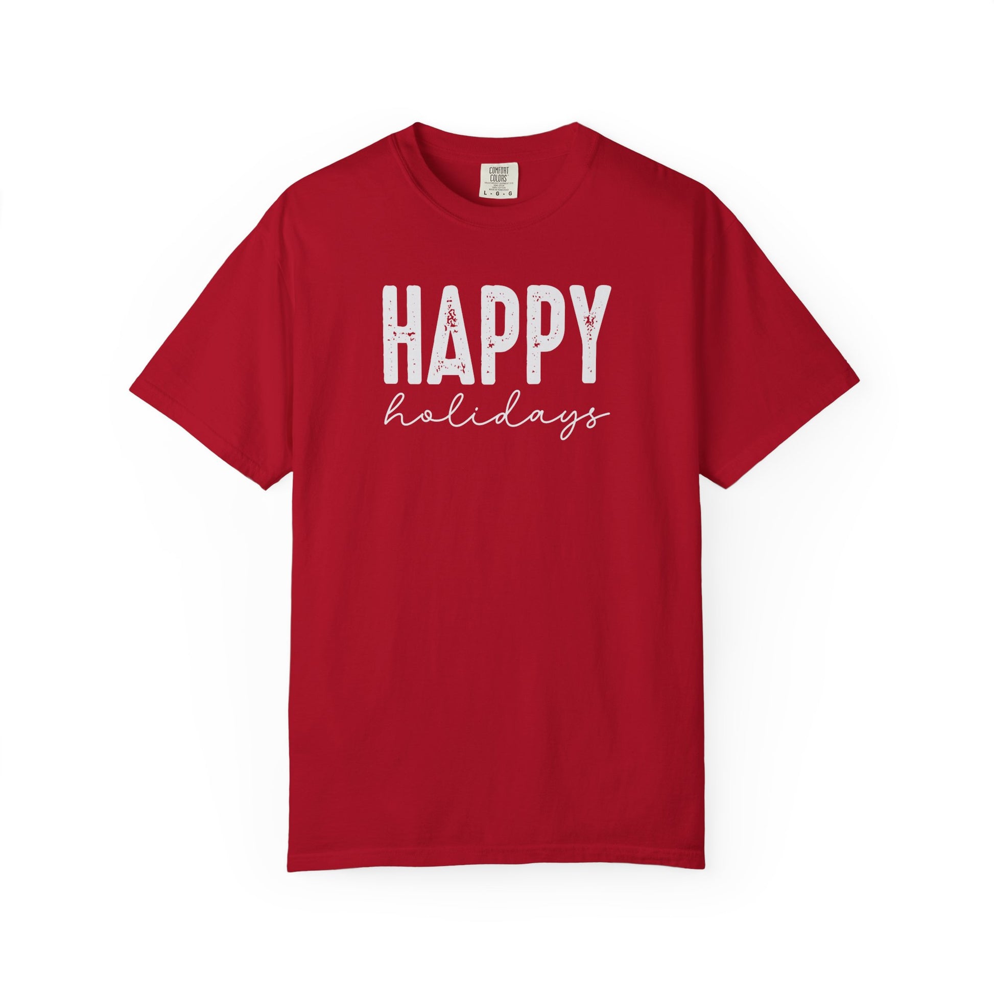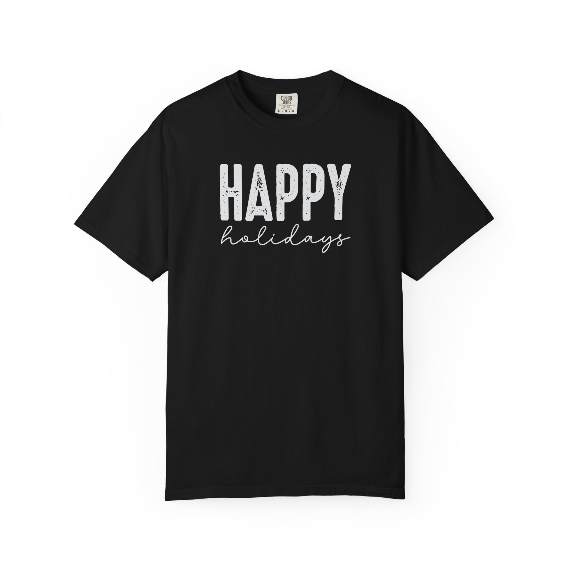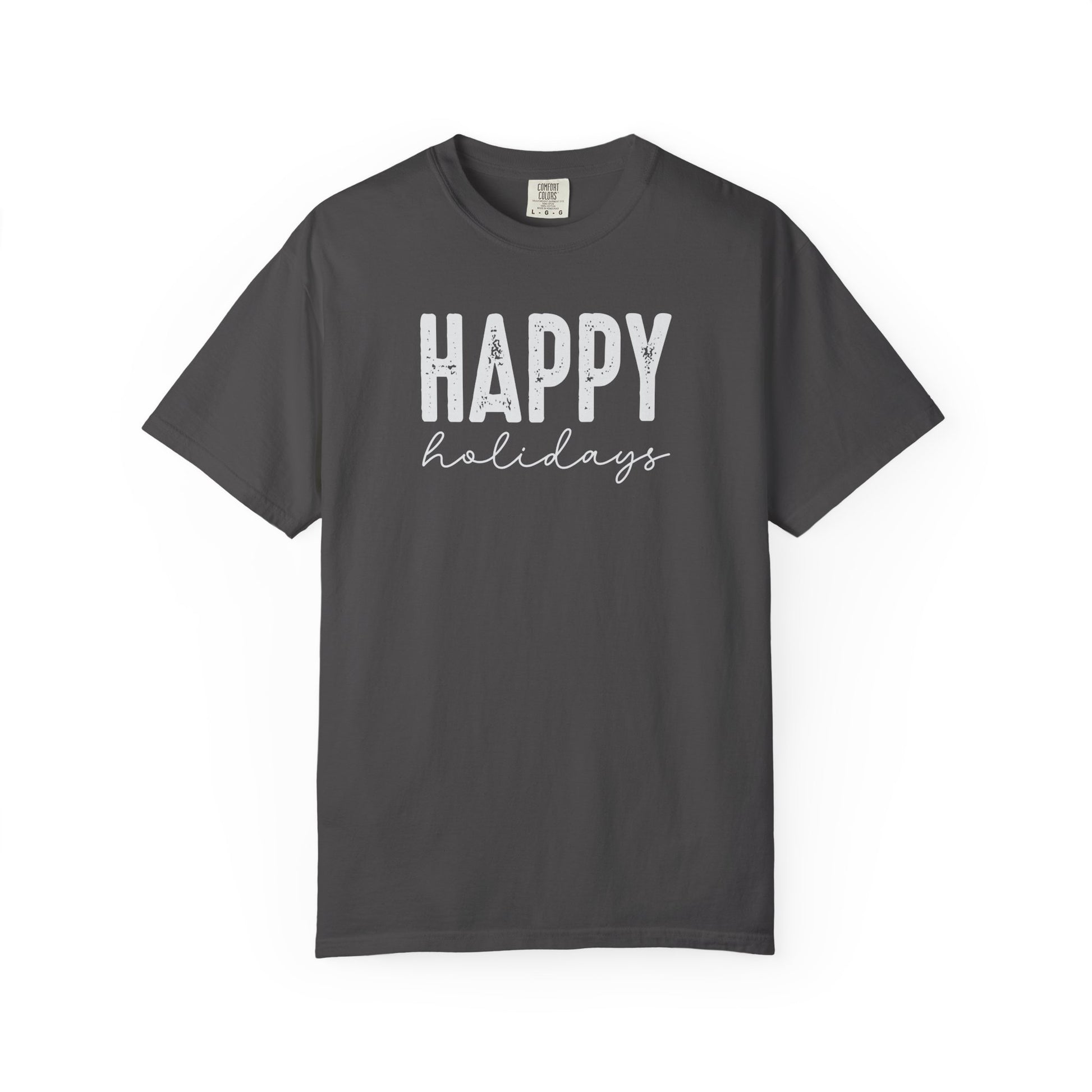 A soft, garment-dyed cotton tee that whispers calm and quiet joy. The heavyweight knit feels substantial without being stiff, settling into a relaxed silhouette that moves with you. Subtle, tonal lettering reads “HAPPY” across the chest, low-contrast for a lived-in, understated look — like a private reminder you can wear. It layers easily under a jacket or stands alone with worn denim for everyday comfort. This tee suits people who favor comfort with a gentle, minimalist statement: those who enjoy slow mornings, long walks, and clothes that age into memory. The fabric and construction are built to last, so this becomes one of those go-to pieces you reach for again and again.